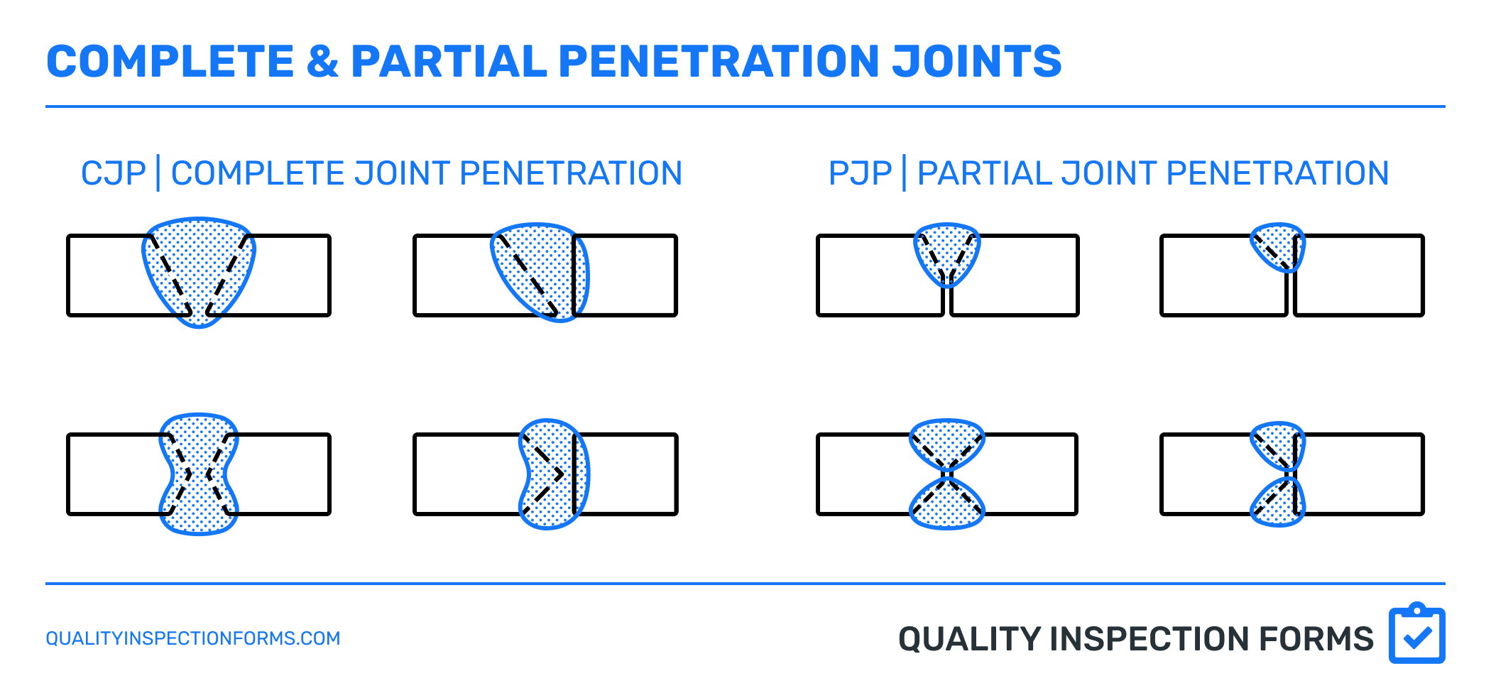 A CJP or Complete Joint Penetration weld is a weld in which the weld metal extends through the full thickness of the base material being welded.