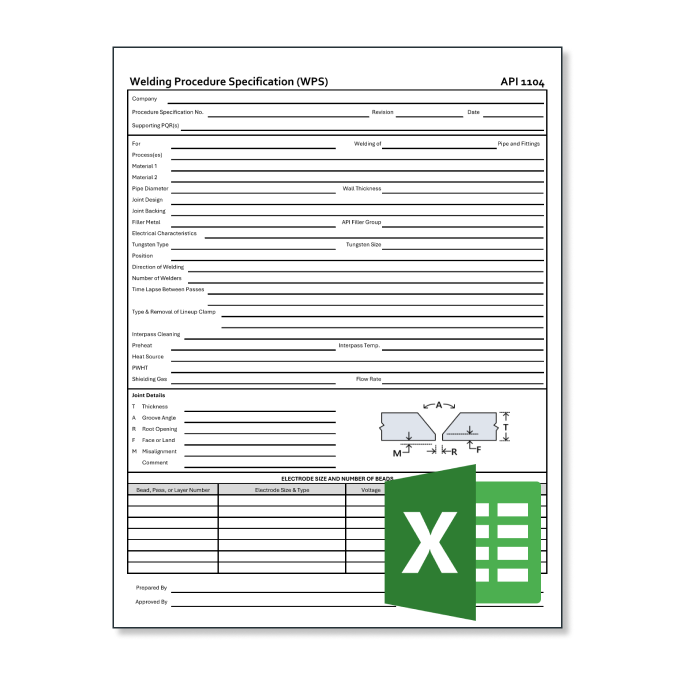 Categories: All ITP Welding Procedure Quality Program Welder Performance Form Piping Vessel Structural Checklist ASNT ASME AWS NDE Welding Reference STORE All | ITP | Welding Procedure | Quality Program | Welder Performance | Form | Piping | Vessel | Structural | Checklist | ASNT | ASME | AWS | NDE | Welding | Reference | Quick View WPS & PQR - ASME Section IX - Blank Form $99.00 Quick View D1.1 PreQualified FCAW WPS - CJP Groove $99.00 Quick View D1.1 PreQualified FCAW WPS - Fillet $99.00 Quick View D1.1 PreQualified SMAW WPS - CJP Groove $99.00 Quick View D1.1 PreQualified SMAW WPS - Fillet $99.00 Quick View D1.1 PreQualified GMAW WPS - CJP Groove $99.00 Quick View D1.1 PreQualified GMAW WPS - Fillet $99.00 Quick View D1.1 - PreQualified Blank WPS Form $50.00 Quick View WPS-PQR - API 1104 - Blank Form $50.00 Quick View WPQ -ASME Section IX - Blank Form $50.00 Quick View WPQ - AWS D1.1 - Blank Form $50.00 Quick View Weld Log - Piping $30.00 Quick View Inspection and Test Plan : B31.3 Pipe Fabrication $30.00 Quick View Inspection and Test Plan : Structural Steel - Field Install $30.00 Quick View Inspection and Test Plan : Structural Steel - Shop Fab $30.00 Quick View Inspection and Test Plan : Grout $30.00 Quick View Inspection and Test Plan : Concrete $30.00 Quick View Inspection and Test Plan : Earthwork $30.00 Quick View Inspection and Test Plan : Blank Template $25.00 Quick View Pressure Test Form $10.00 Quick View NonConformance Report $10.00 Quick View NDE Request Form $10.00 Quick View VT Examination Report - ASNT $20.00 Quick View MT Examination Report - ASNT $20.00 Quick View PT Examination Report - ASNT $20.00 Quick View AWS Welding Symbols Reference $5.00 Quick View WPS Variables Table Section IX $15.00 Quick View Nickel Filler Metal Selection Guide $10.00 Quick View ASNT VT Level II Company Training $50.00 Quick View Fraction and Decimals $5.00 Quick View ASME P-Number Reference $5.00 Quick View Weld Joint Sketches $5.00 Quick View ASME F-Number Reference $5.00 Quick View Filler Metal Classifications $5.00 Quick View Filler Metal Specifications $5.00 Quick View ASME A-Number Reference $5.00 Quick View ASME Progressive Weld Sampling Reference $5.00 Quick View Pipe Schedule $5.00 Quick View Fillet Weld Gauge Instructions $5.00 Quick View Weld Joint Terms Reference $5.00 Donate